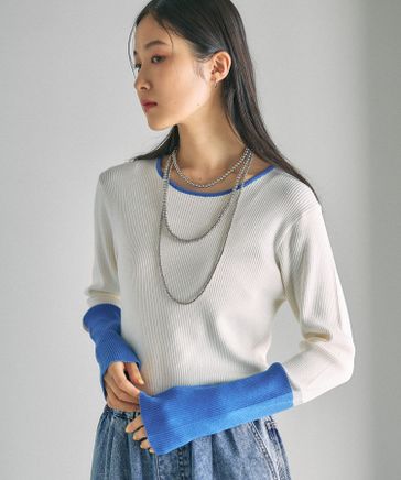 配色リブプルオーバー