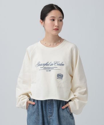 ショート刺繍裏毛プルオーバー