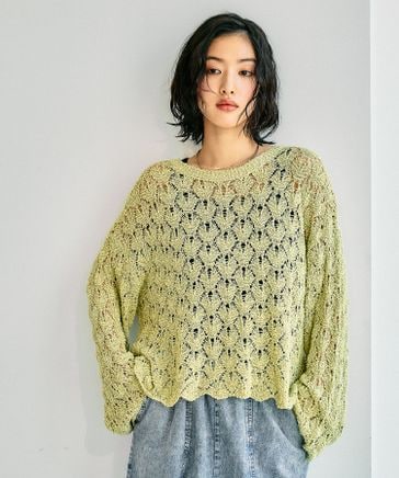 5ゲージ透かし長袖プルオーバー