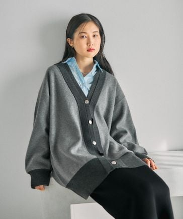 5ゲージ2WAYロゴチュニックカーディガン