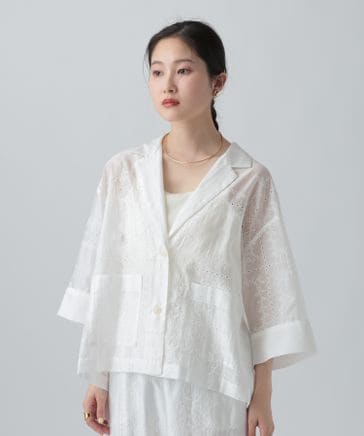 オーガンジー刺繍5分袖ジャケット