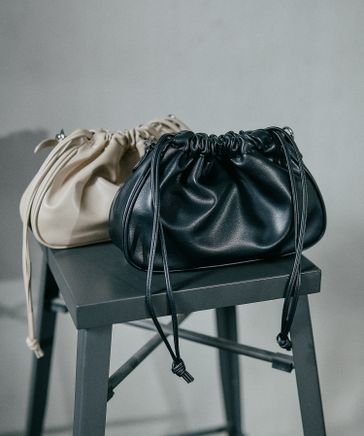 フェイクレザー結びミニバッグ