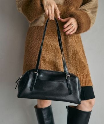 フェイクレザーラウンドミドルバッグ