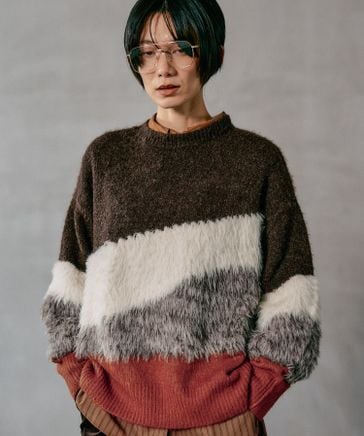 5ゲージ柄シャギーVカーディガン【新色&追加予約】