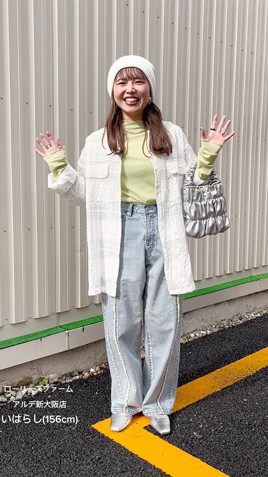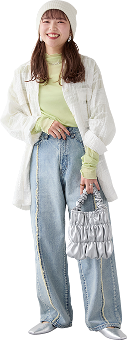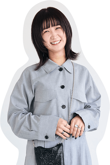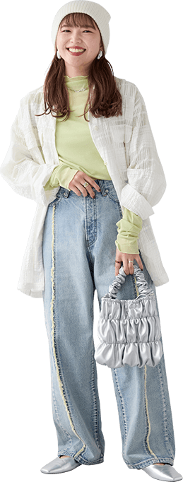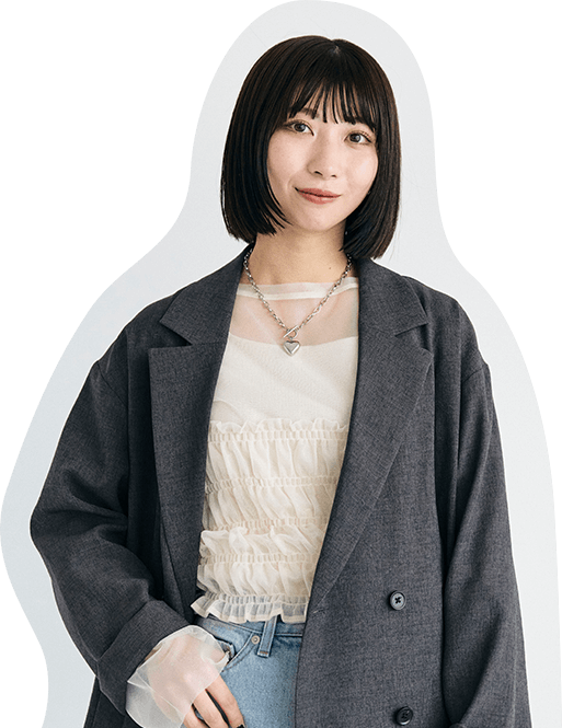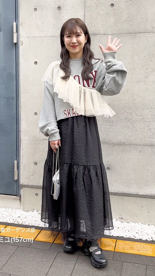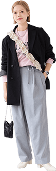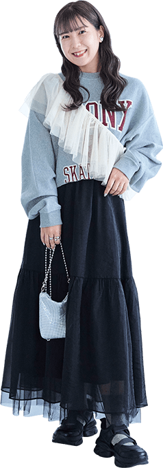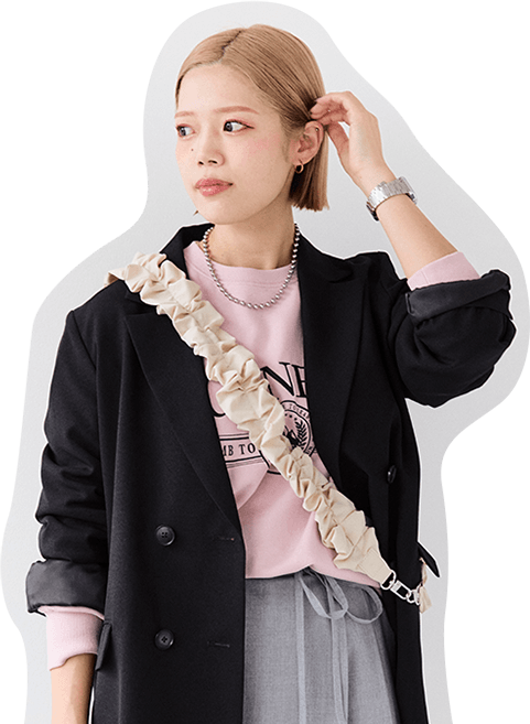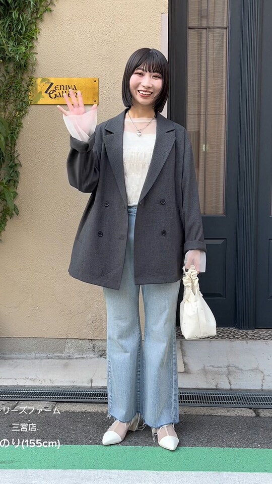 大人っぽいグレーのセットアップは身に纏うだけで洒落感アップ。ヘアスタイルに合わせてきれいめな雰囲気にまとめました!