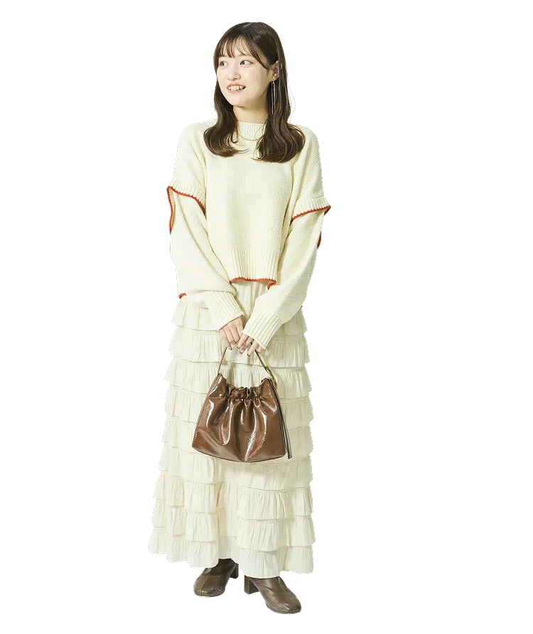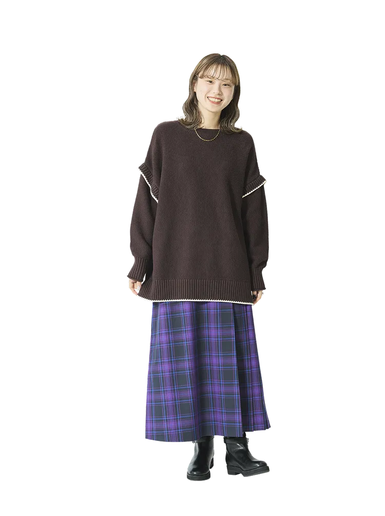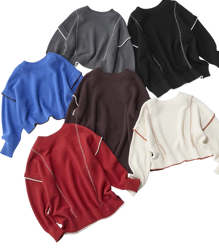 配色ステッチが目を引くニットは、選べる着丈&前後2WAYで着回し力抜群。軽くて保温性に優れた柔らかな着心地のアイテムです。マシンウォッシャブルで毛玉が発生しにくい素材なのも魅力。