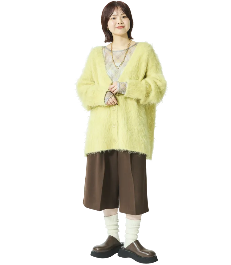 アルパカとウール混のロングカーディガンは、軽くて柔らかい素材を起毛させた毛足感が見た目にも愛らしく、あたたかみのある表情が魅力。着こなしの鮮度が上がる、存在感のある一枚です。