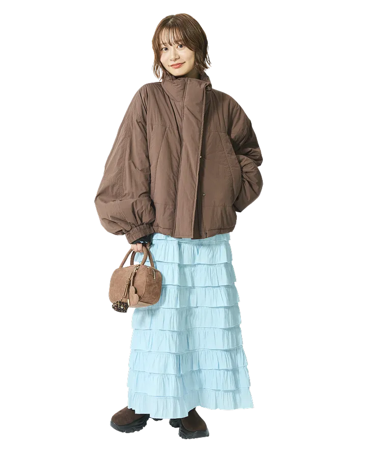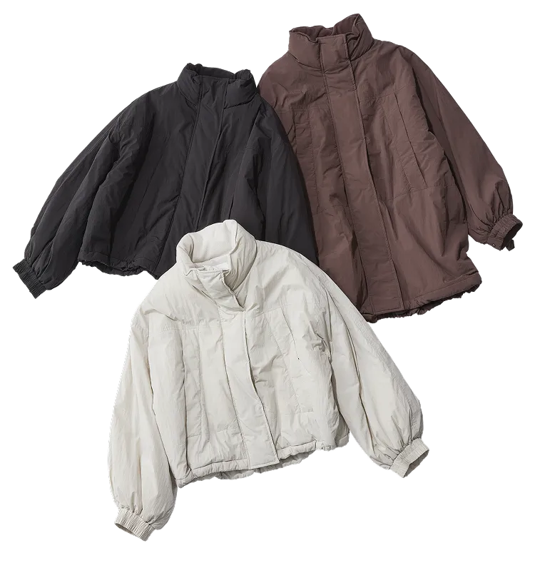 柔らかな風合いと程よいボリューム感で、綺麗めからカジュアルまで幅広いテイストにマッチする優秀アウター。軽くて暖かいのはもちろん、撥水加工が施されているので普段使いにも最適です。