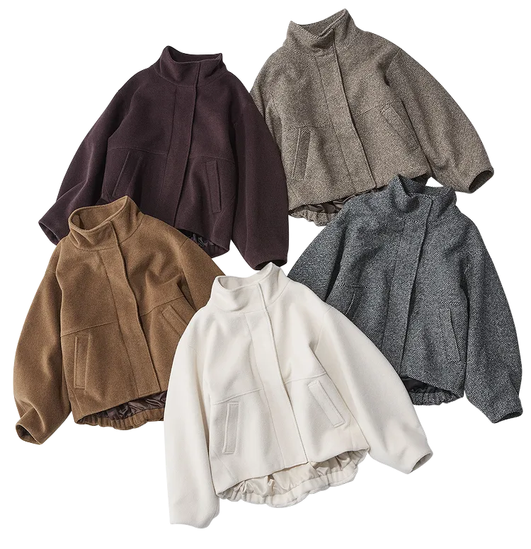 大きめのスタンドカラーと丸みのあるシルエットが、女性らしい可愛さを引き立たせてくれるブルゾン。肌触りのいいシャギー生地で、さっと羽織るだけでこなれて見える柔らかな風合いも◎。