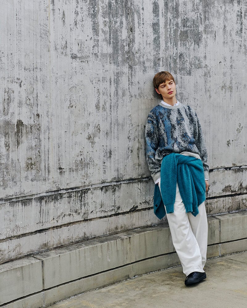 Web Storeknit ¥7,700 / T-shirt ¥4,990 / pants ¥8,800