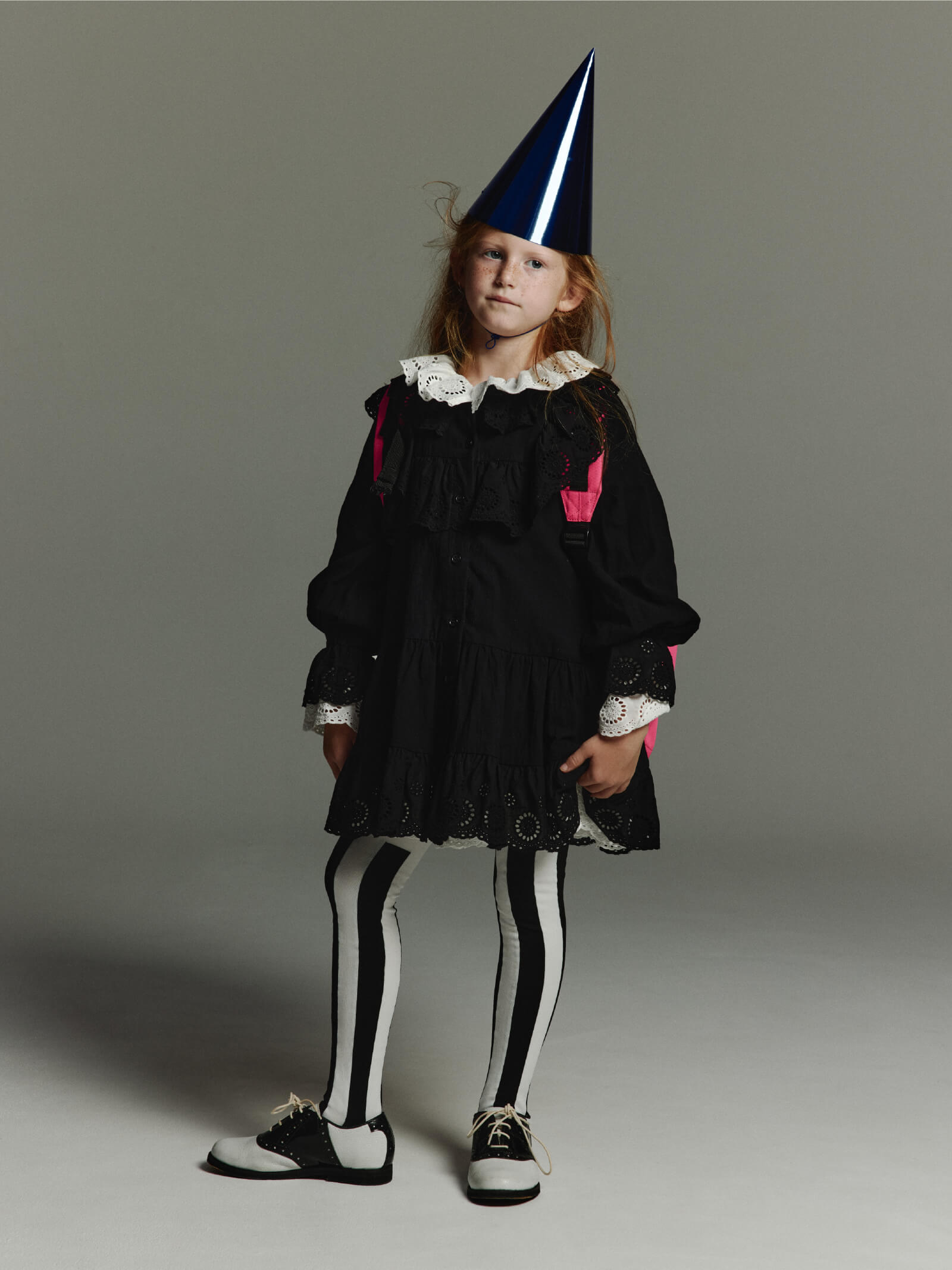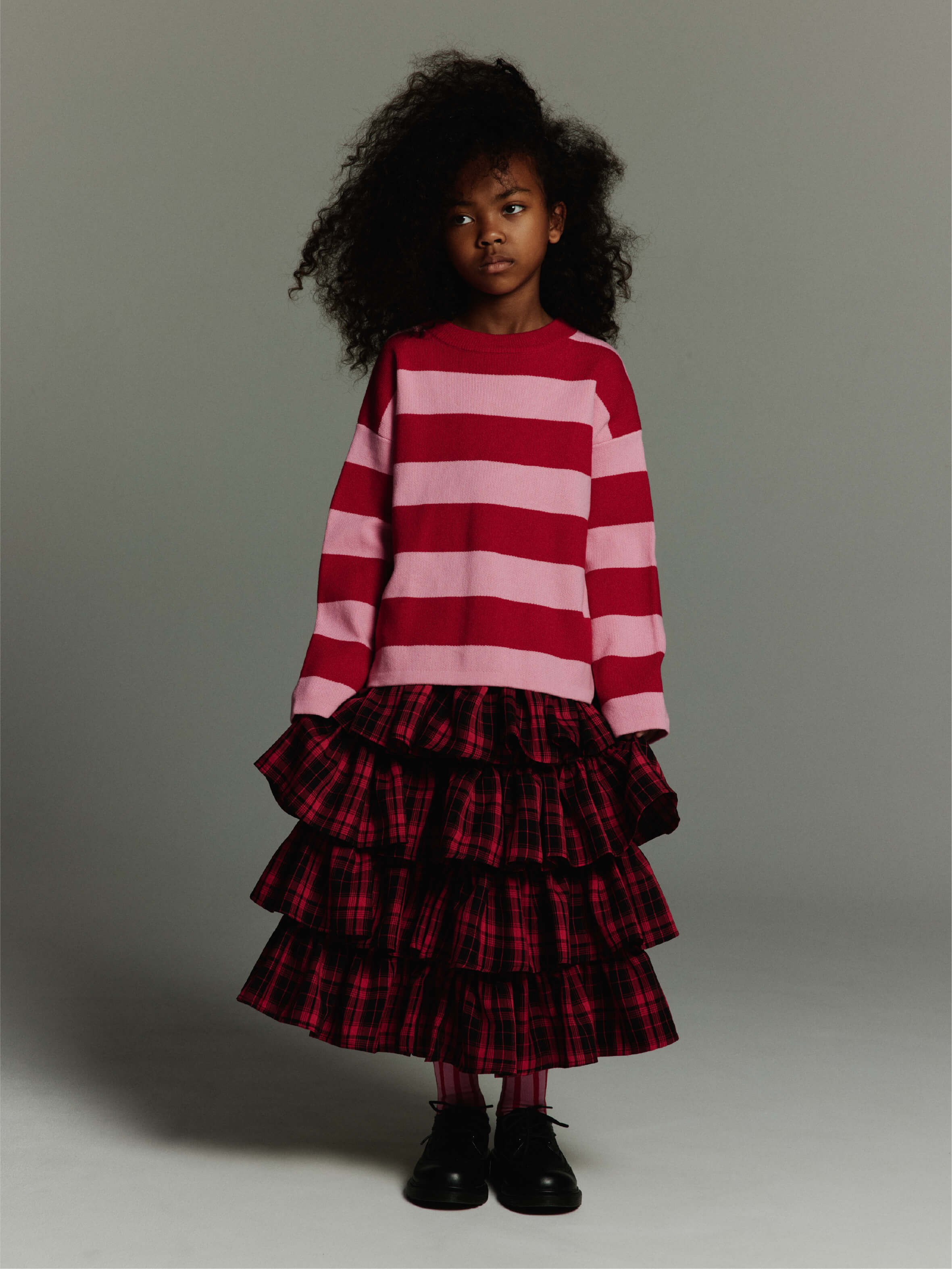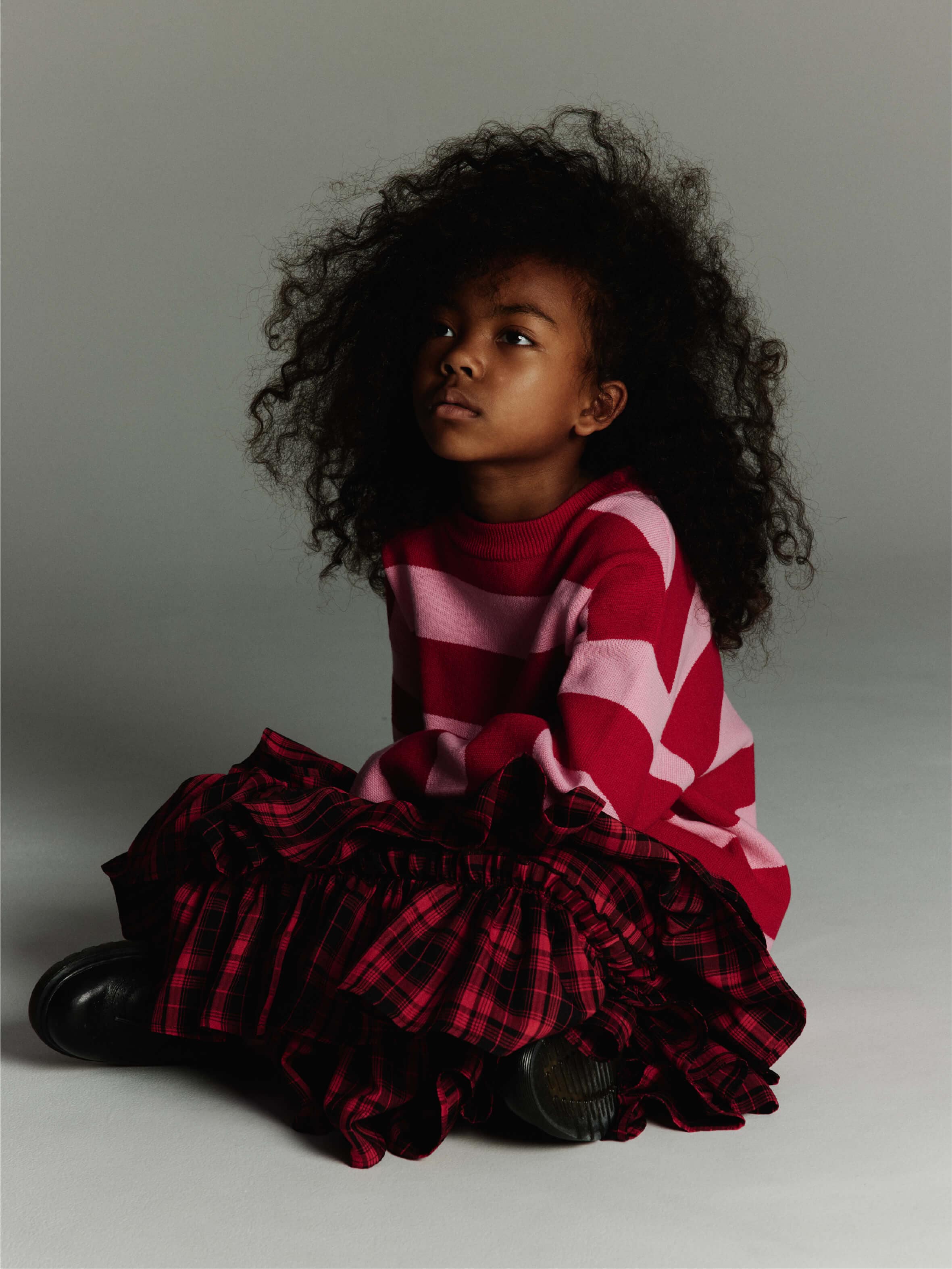 軽やかに舞うフリルに、弾けるような色彩とパターンのアクセント。重ねることで生まれる自由なスタイルが〈ローリーズファーム キッズ〉の秋冬コレクションを、まるでサーカスの幕が上がる瞬間のように静かな高揚へと変えていく。最高のドレスコードは、いつだって輪の中に広がる遊び心。