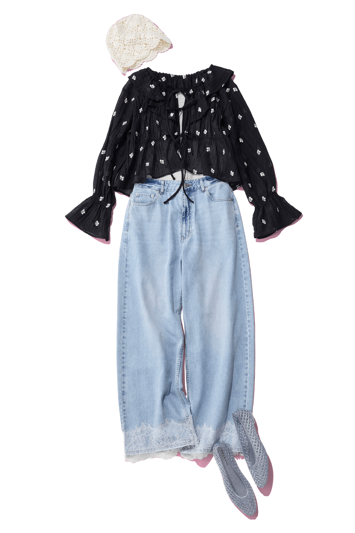 ロマンティックなブラウスとレースが好相性。