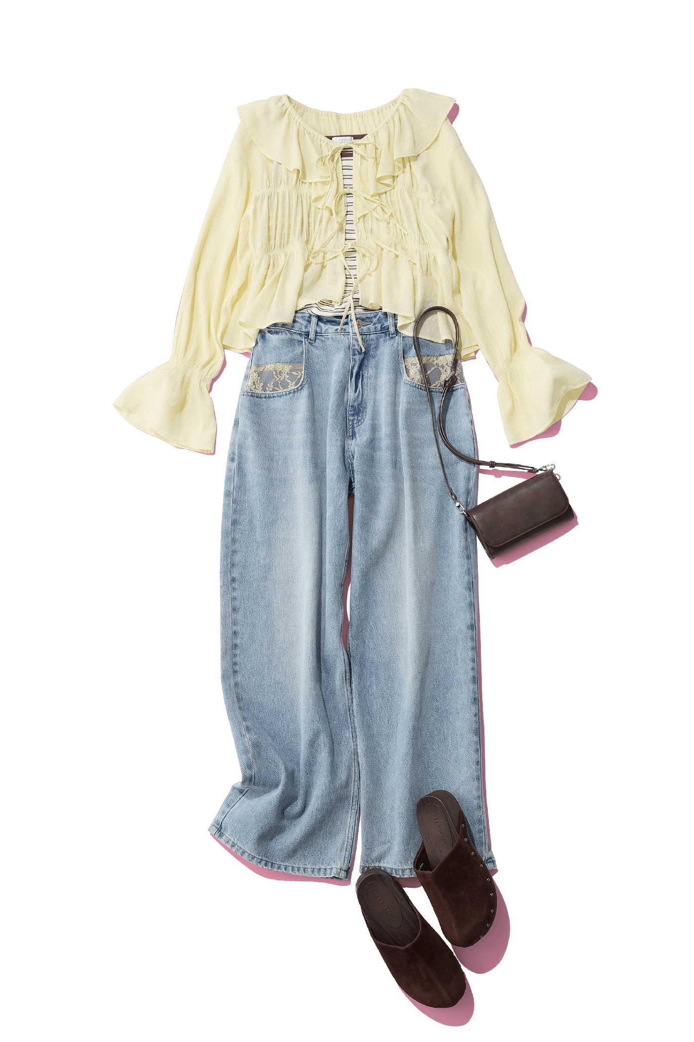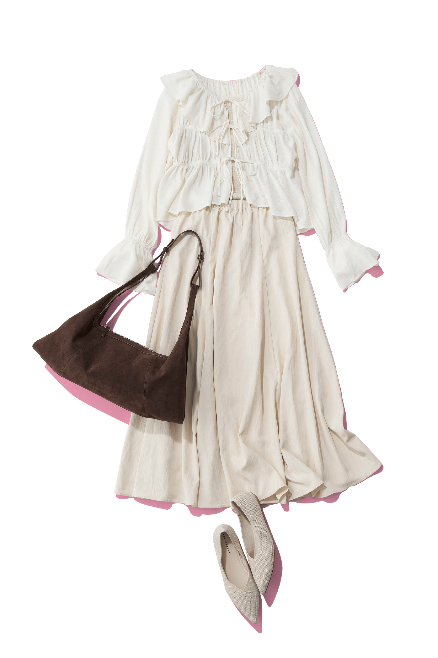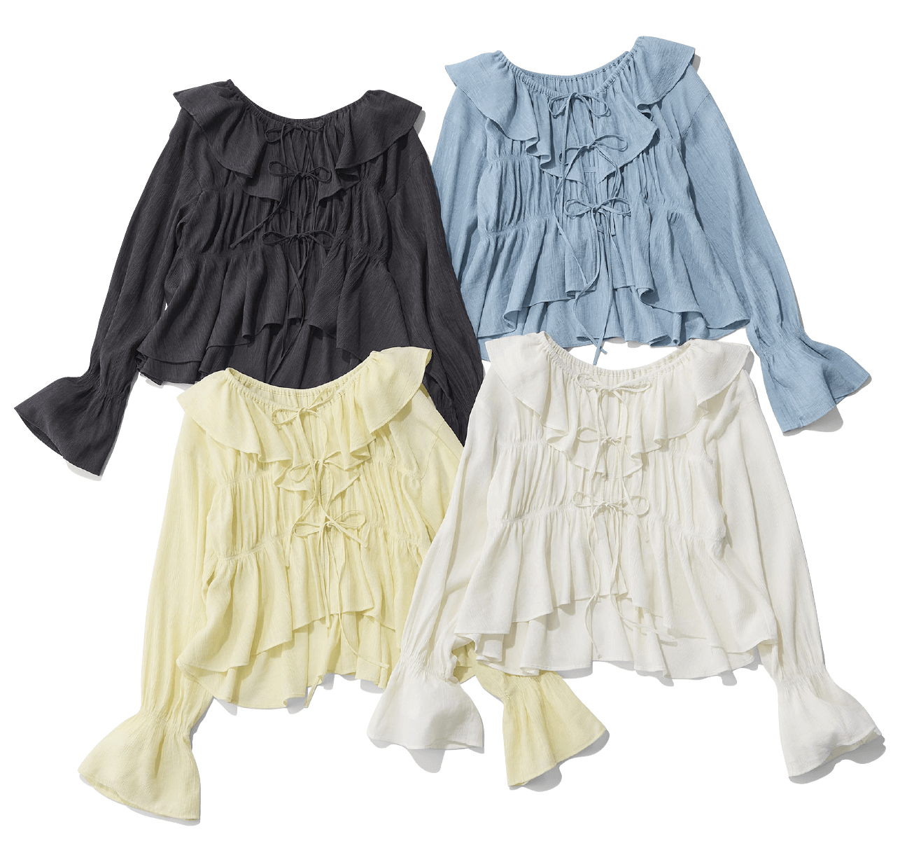 毎シーズン人気のヨウリュウブラウスにフリルの襟を加えて、よりドラマティックに! 春らしさを体現してくれる1枚で着映えるアイテムなので、コーデの主役としてヘビロテして。