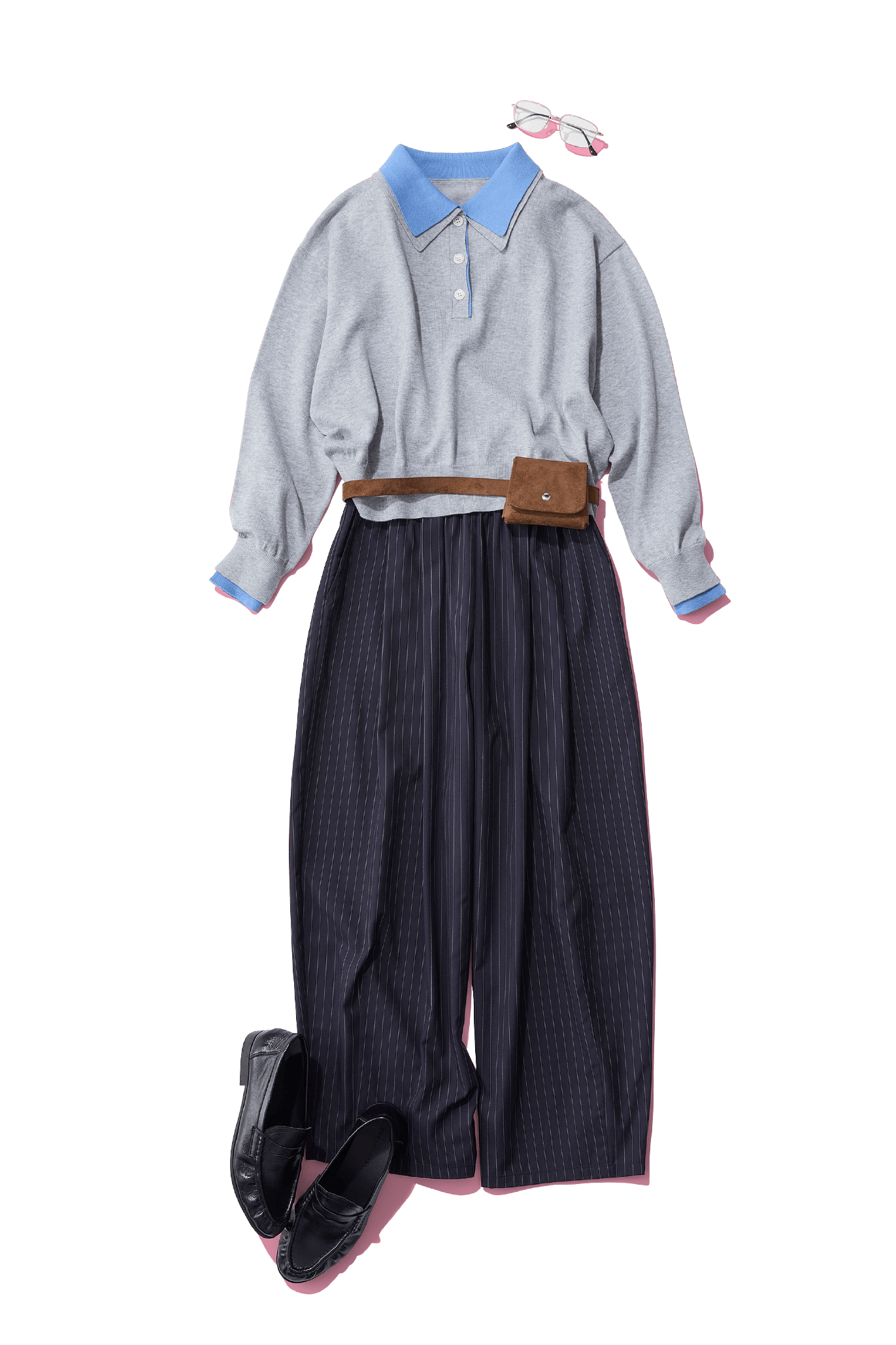 バイカラーニットにポーチ付きベルトでアクセントを!