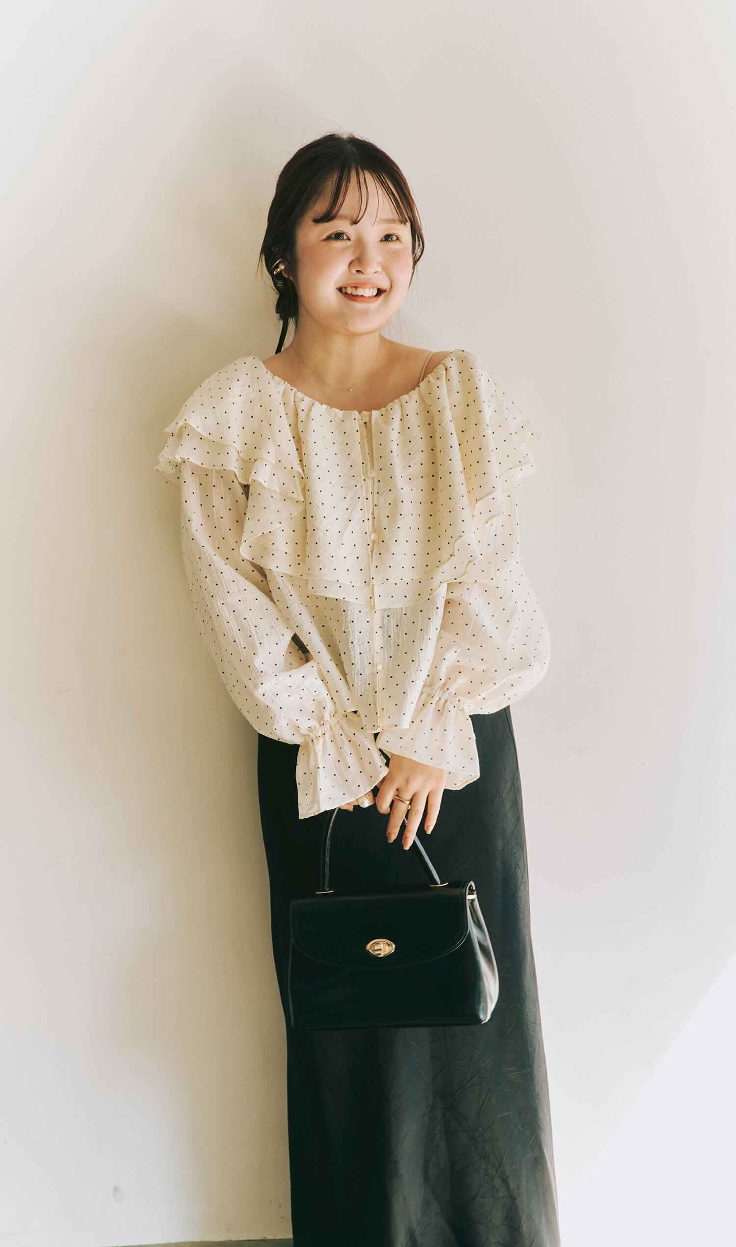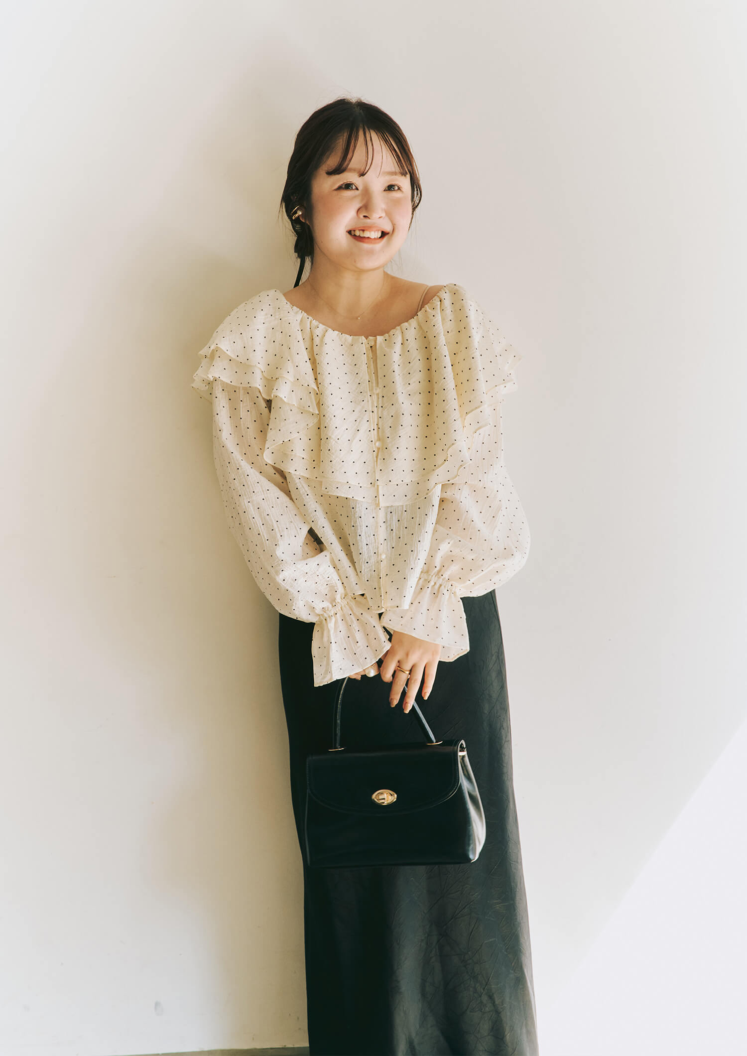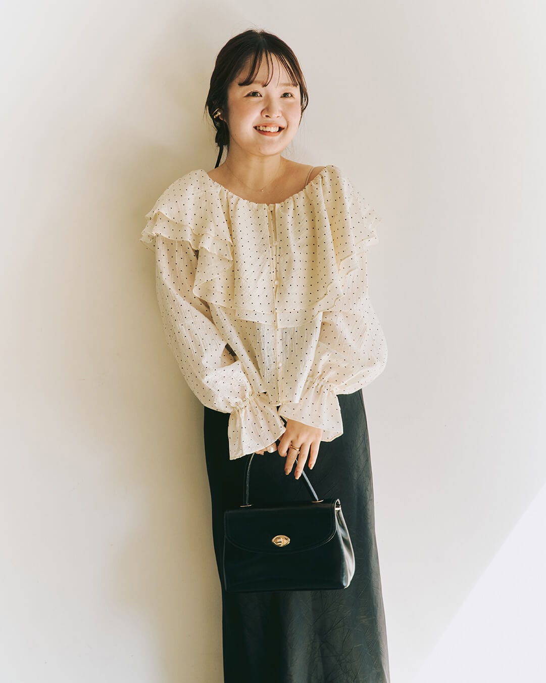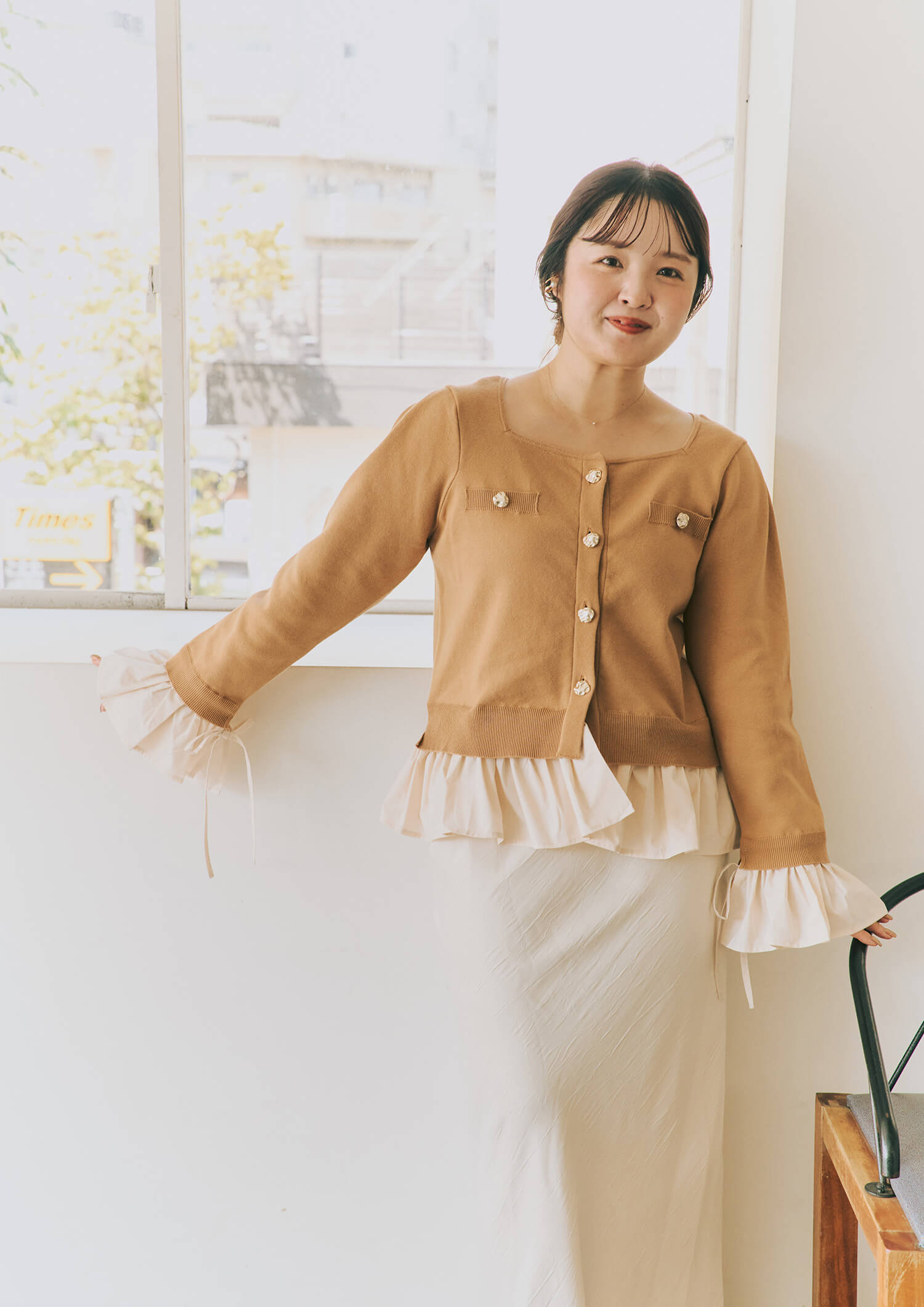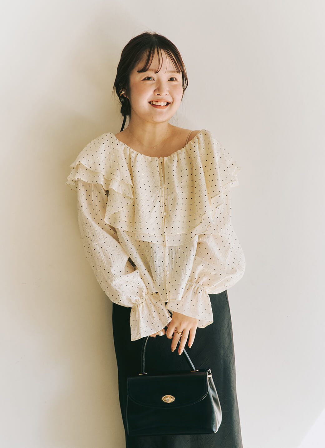 フリルたっぷりの3WAYブラウスは、一枚ではもちろんレイヤードでも着られる万能アイテム。カーディガンは、裾や袖のフリルが取り外し可能なのがこだわりです。透け感のあるヘアバンスはミニポーチ付きで、ヘアも持ち物もかわいく彩ってくれること間違いなしです!
