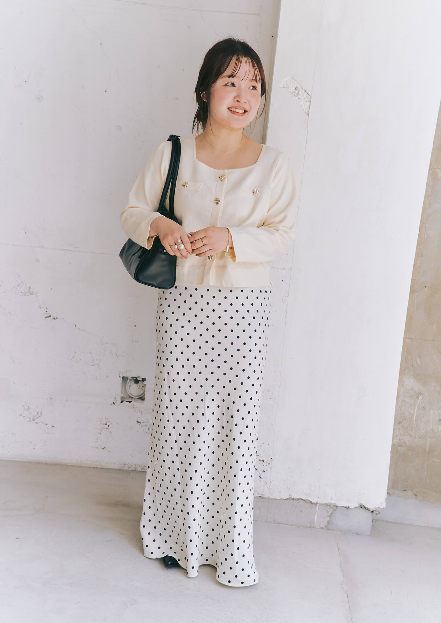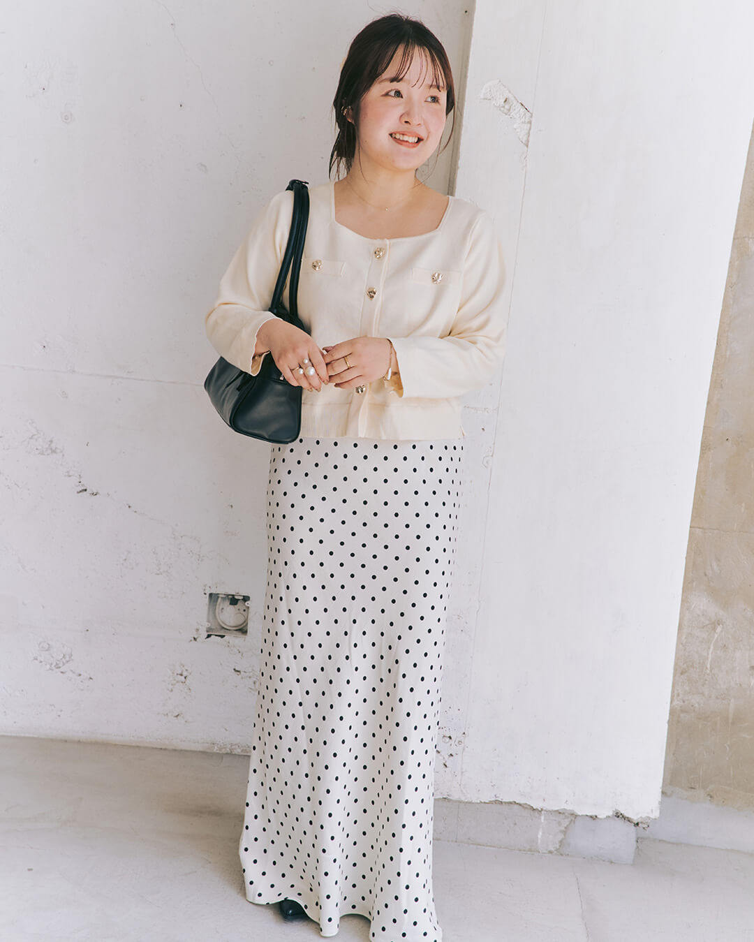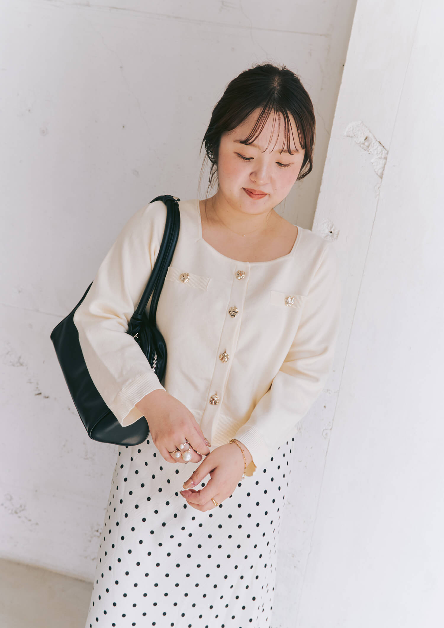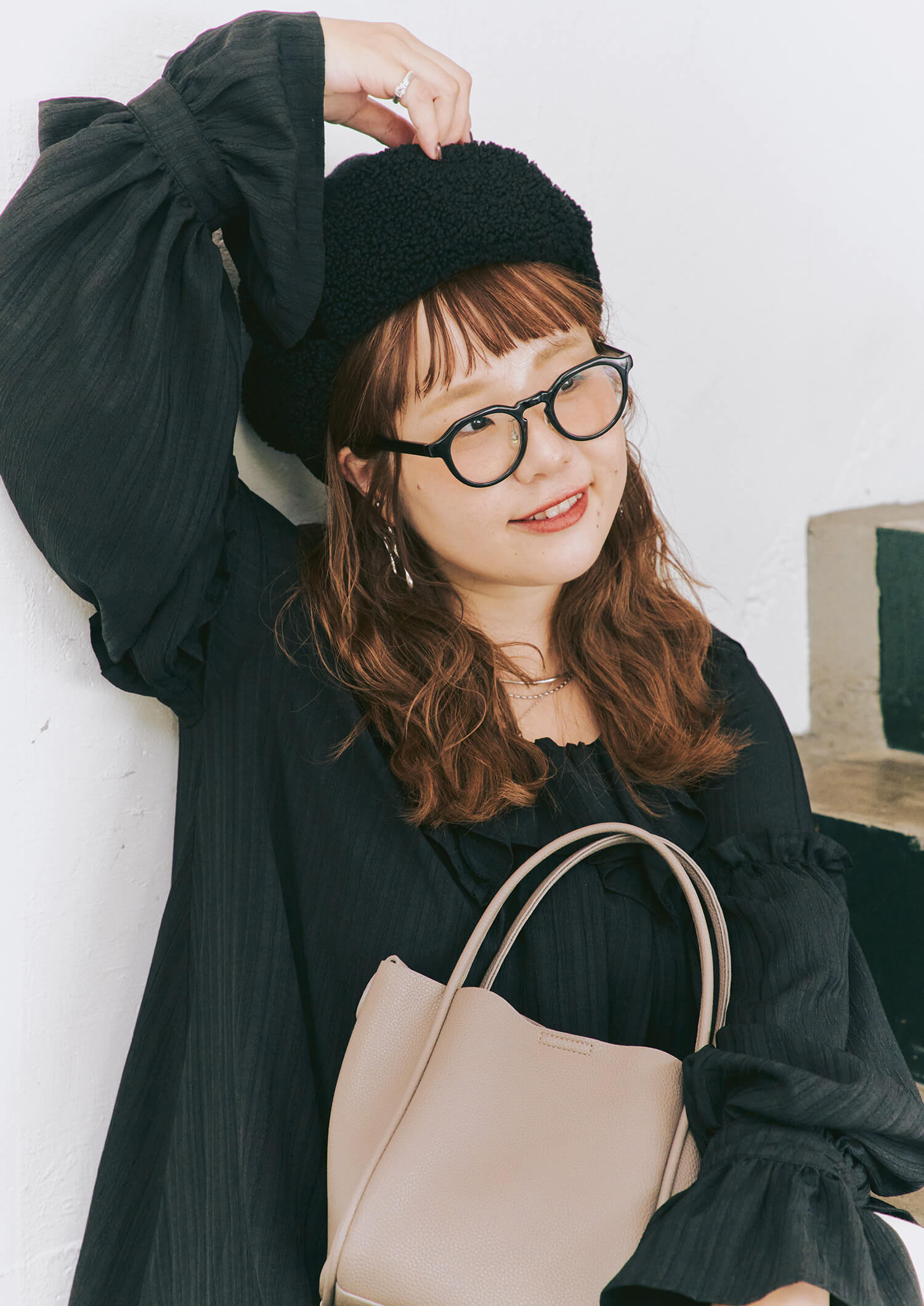ミリタリー風のデザインで洒落感のあるジャンパースカート。ニットやスウェード調のバッグを合わせることで、秋らしくやわらかい雰囲気に仕上げました。ボリューム感のあるボアキャップとの相性も抜群です。
