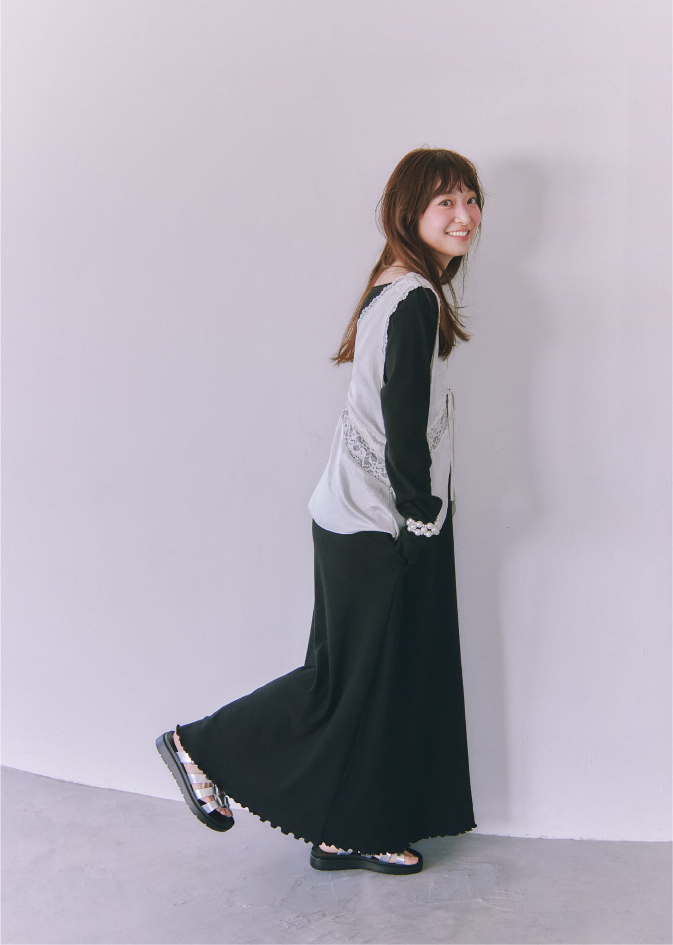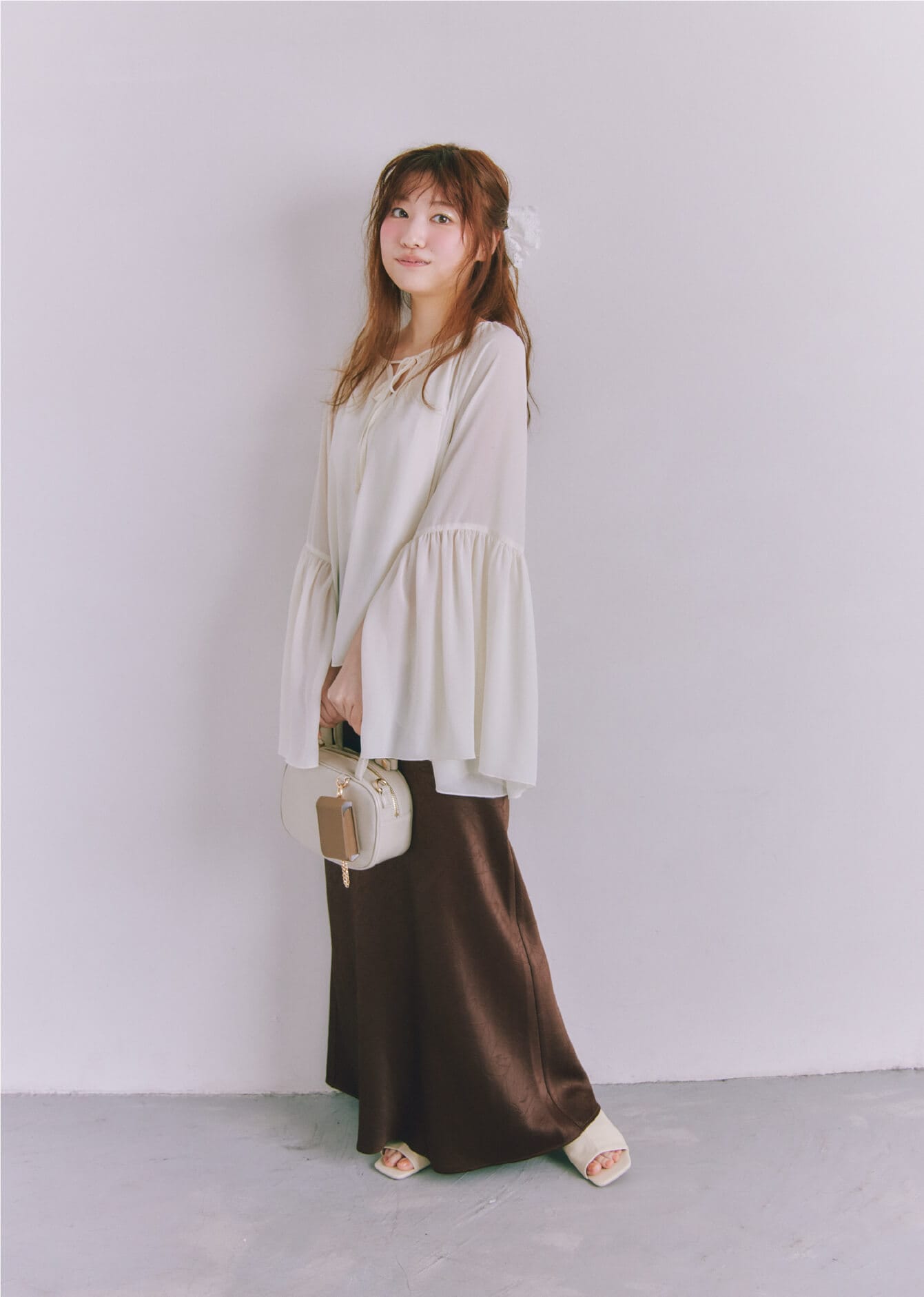 フェミニンな着こなしに定評のある