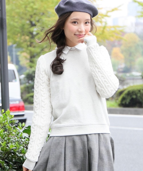 スウェット*ケーブルプルオーバーロングスリーブ