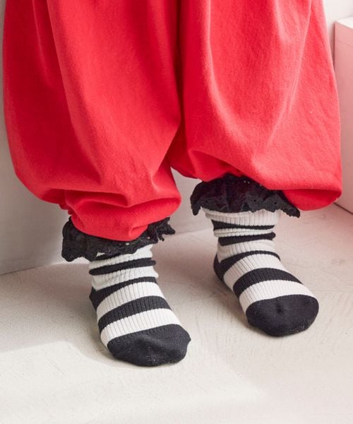 【KIDS】ボーダーレースソックス