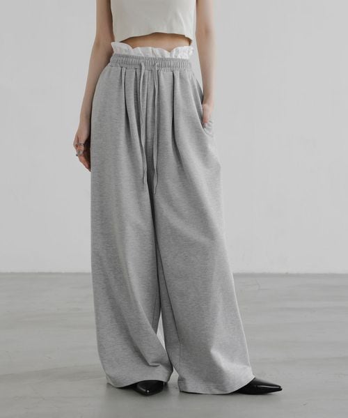Wウエストスウェットワイドパンツ