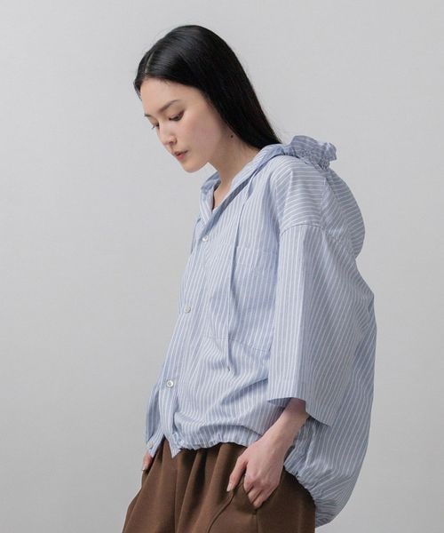 【先行予約】【LFM(U)】ストライプフーディショートシャツSS