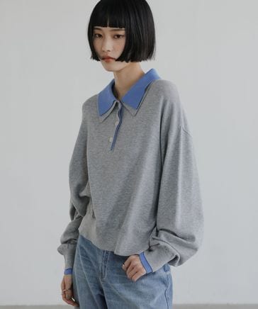 バイカラーニットポロLS