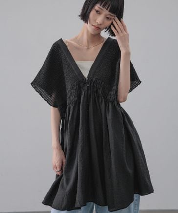 【新色WEB先行予約】シャーリングチュニックフレンチスリーブ