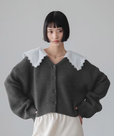 【レース取り外し可能】レースカラーニットカーディガン