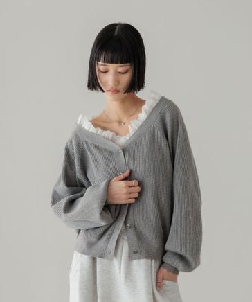 ショルダーパフカーディガンLS