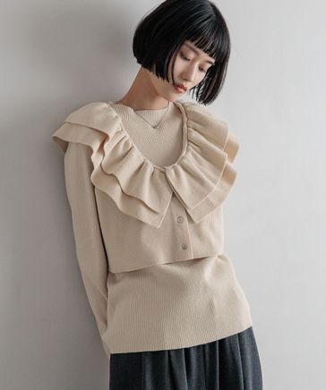 【新色WEB先行予約・追加予約】【more+me第5弾対象アイテム】チビフリルカーディガンLS