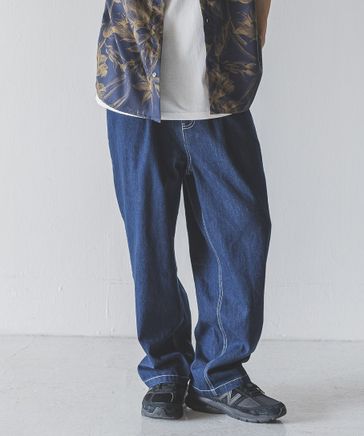 【MEN】ライトデニムタックワイドパンツ