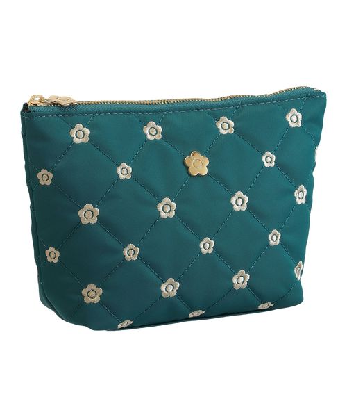キルトデイジー刺繍 舟型ポーチ