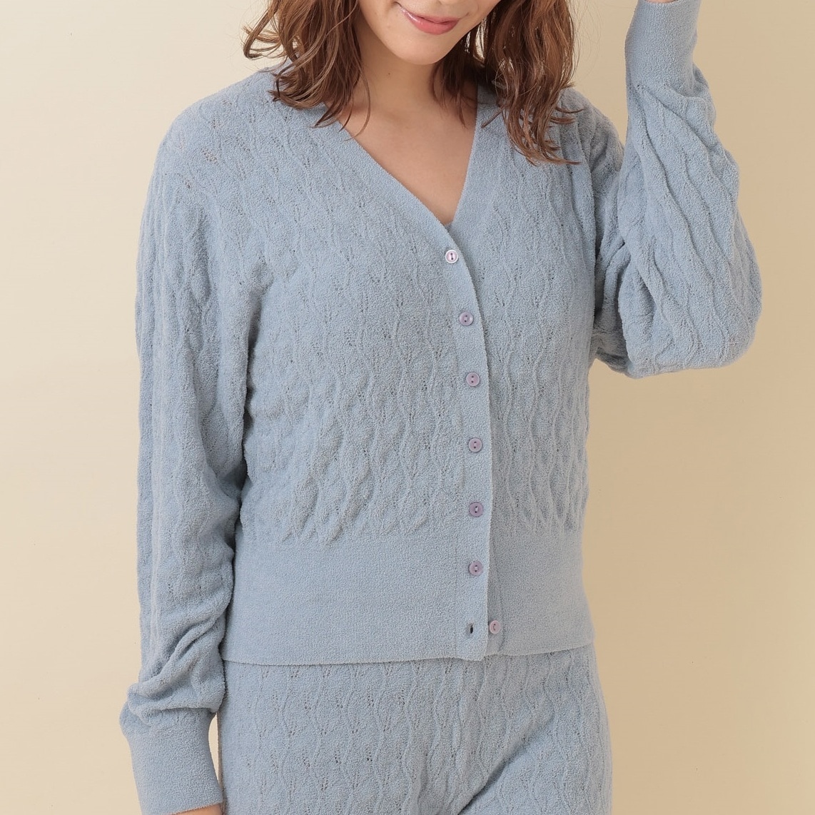 【吸湿発熱】nainen Vネックカーディガン(リーフレース柄)