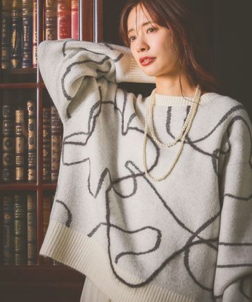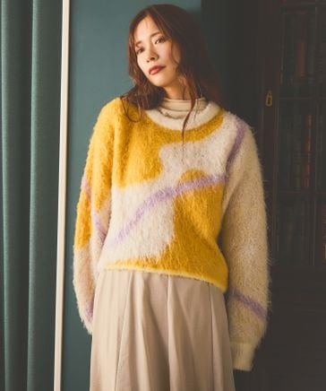 【WEB限定】フェザーフラワージャガードニットプルオーバー