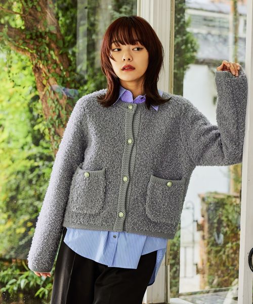 ツイードライククルーネックカーディガン