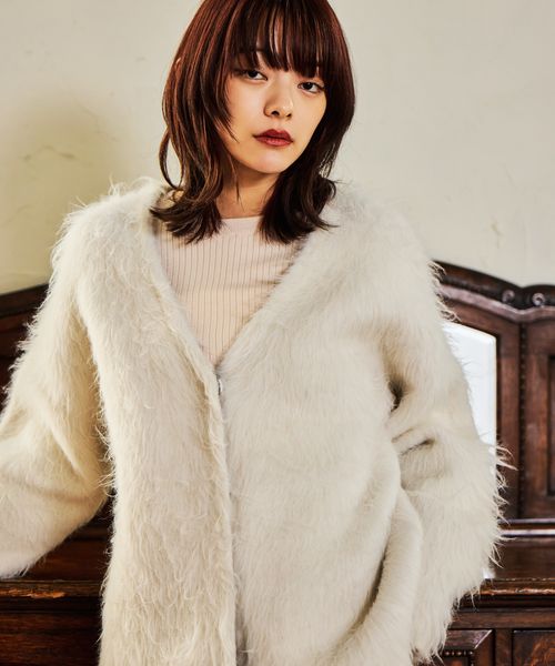 接結シャギーニットカーディガン