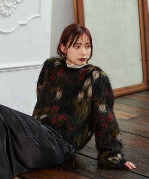 フラワージャガードシャギーニット