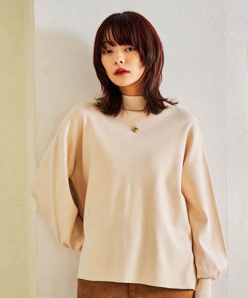袖ボリュームハイネックプルオーバー