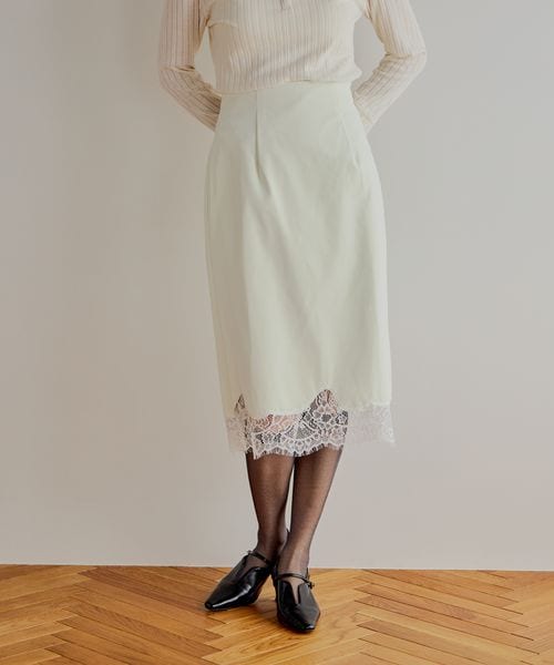 【先行予約】裾レースフェイクレザースカート