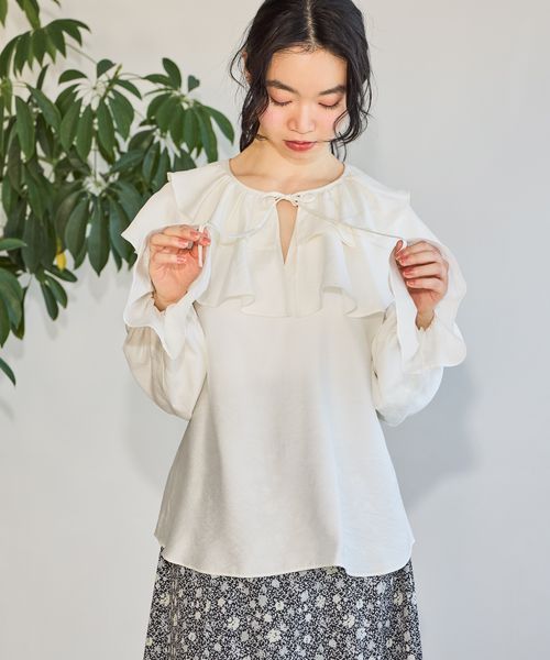 フリルカラーブラウス長袖