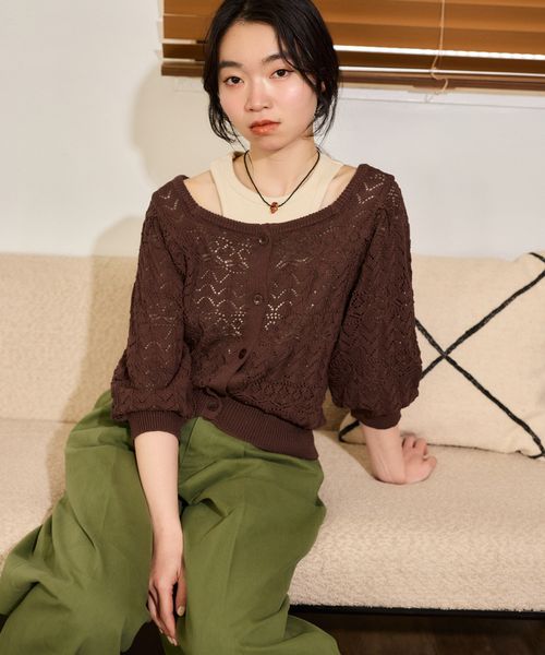 【先行予約】リネンライク透かし柄カーディガンSS
