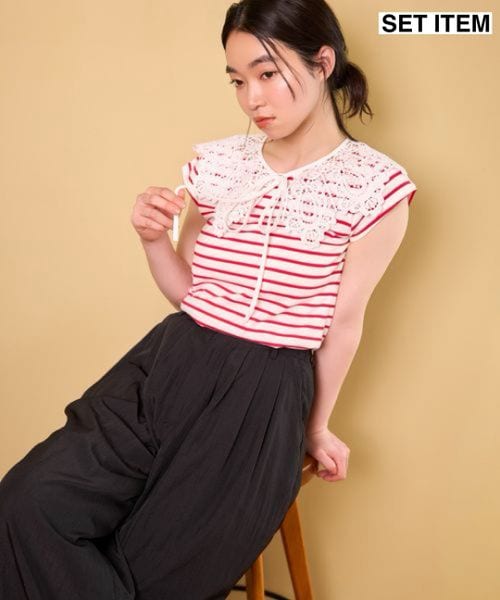 【先行予約】レース襟付きボーダーTEE