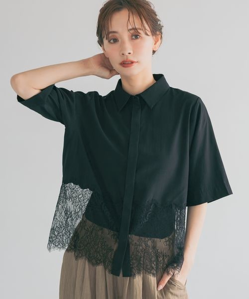 【先行予約】裾レースキリカエシャツ半袖