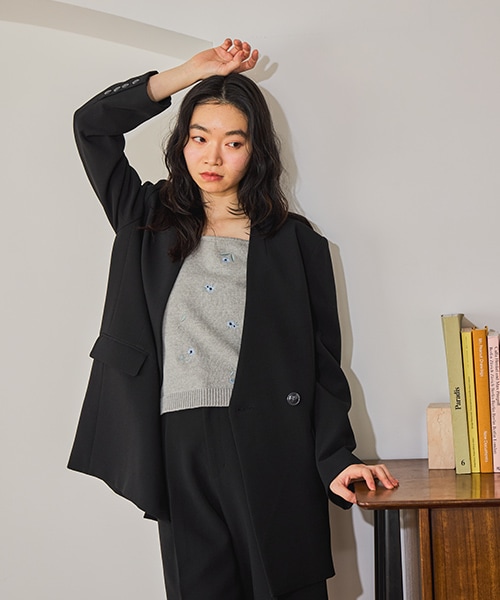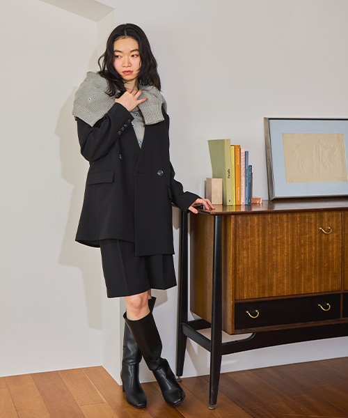 【セットアップ着用可】ノーカラーWジャケット