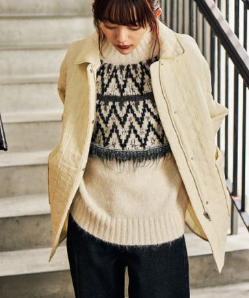 【WEB限定】フェザーフラワージャガードニットプルオーバー