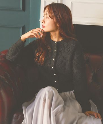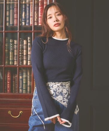 【WEB限定】フェザーフラワージャガードニットプルオーバー
