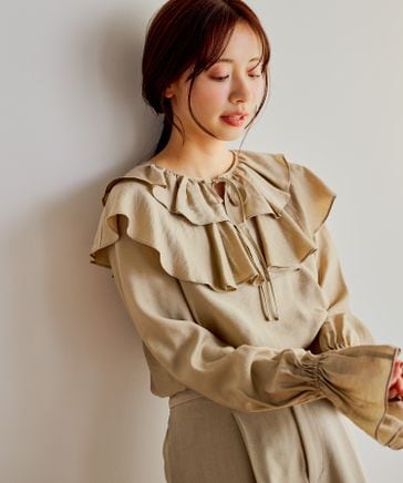 フリルカラーブラウス長袖