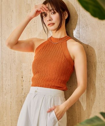 ホルターバッククロスニットノースリーブ