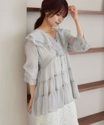 【WEB限定カラー有】楊柳ティアードフリルブラウス