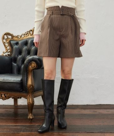 【無地・チェック/セットアップ着用可】ベルテッドショートパンツ